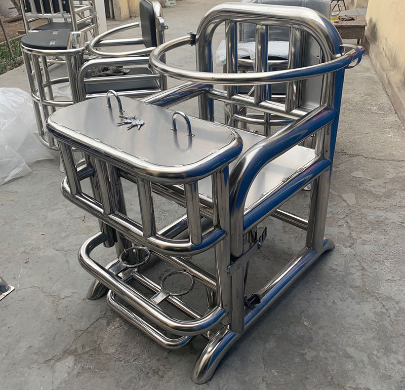 首先是方型的審訊椅,這款方型的審訊椅采用的是不銹鋼材質(zhì)的,優(yōu)點(diǎn)是不容易生銹,而且很牢固。